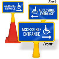 Identify all the accessible entrances in your building, mounted near accessible parking spots using our Accessible Entrance Signs. Point out a guide to your ramps, gates, or doors to prevent confusion.