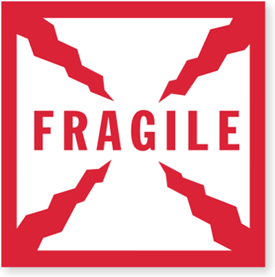 - Labels use the internationally recognized "cracked glass" symbol to convey the package's sensitivity to rough handling.
