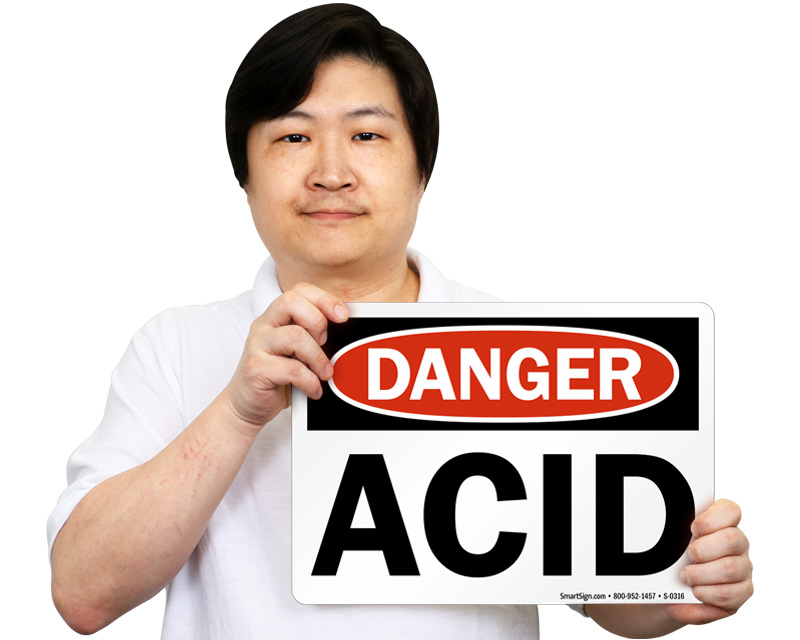 Acid warning signs alert workers to the presence of corrosive acids. They use headers from our osha danger signs or "corrosive" labels and often include instructions for specific PPE. View the full range in our acid warning signs category.