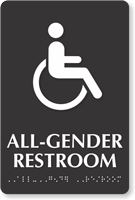 All-Gender Restroom Signs are ADA-compliant. Gender Neutral Restroom Signs feature high-quality materials and Grade II Braille, designed for inclusivity and accessibility. The icon we use was created in collaboration with The Good Men Project and Sam Killermann.