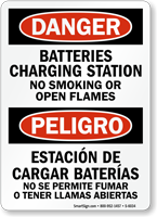 OSHA requires battery charging stations to be located in designated battery charging areas. We have a large variety of Battery Warning Signs to indicate where these charging stations are, and what precautions should be taken.