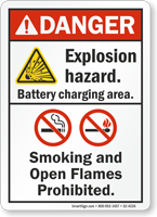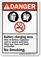 OSHA requires battery charging stations to be located in designated battery charging areas. We have a large variety of Battery Warning Signs to indicate where these charging stations are, and what precautions should be taken.