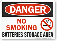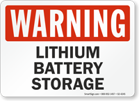 • • Choose from a huge variety of battery signs – lithium battery storage, lead acid battery storage area, and more.