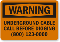 Durable, vivid Buried Cable Signs make it hard for excavators to ignore the danger of buried lines. Contractor digs are a major source of service interruptions. Without a sign, no one will know you placed a buried cable underground until they've already hit it.