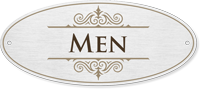 • • Perfect for upscale spaces, our designer Male Restroom Signs come in multiple colors to complement your decor.