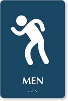 We use Grade 2 Braille on our men’s restroom signs to ensure they comply not only with Federal but with California specifications as well. These signs are tactile as well and have raised characters in compliance with ADA.