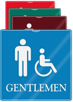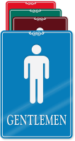 • • Perfect for upscale spaces, our designer Male Restroom Signs come in multiple colors to complement your decor.