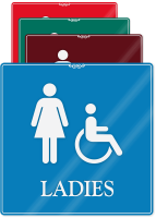 • • Choose from scratch- and chemical-resistant Ladies Restroom Signs in various colors to match your interiors.