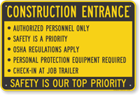 Yes, custom construction signs are often needed to list specific site rules, emergency contacts, or project details. You can add your company logo and specific text while still maintaining OSHA-compliant headers using our easy-to-use custom construction signs tool.