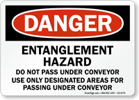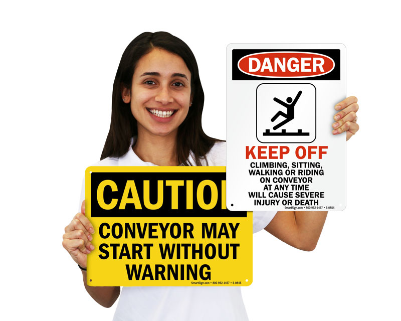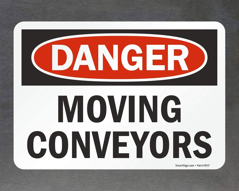 Warnings near the conveyor belts are a must! Without the conveyor warning labels your workers will not be aware of potential dangers that lay ahead. ANSI/ASME B20.1-Safety Standard for conveyors and related equipment regulates that conveyor warning signs must be used to point to an immediate risk or hazard that can cause injuries or even death.