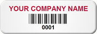 A simplified or reduced-size company logo can be added to the 0.625? × 1.75? label, typically positioned beside text or a barcode. This enhances brand visibility, maintains a professional appearance, and helps with quick asset identification and retrieval. This is a standard customization option for all our custom asset tags.