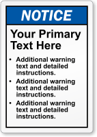 • • Signal word (header) options are - Danger, Warning, Caution, and Notice. Our designs are compliant with ANSI Z535.4 standard for Product Safety Signs and Labels.