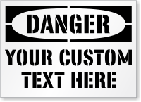 A custom danger sign uses the standard red, black, and white OSHA/ANSI danger header. It allows you to add specific text to warn of immediate, life-threatening hazards. This is the top tier of our osha danger signs.