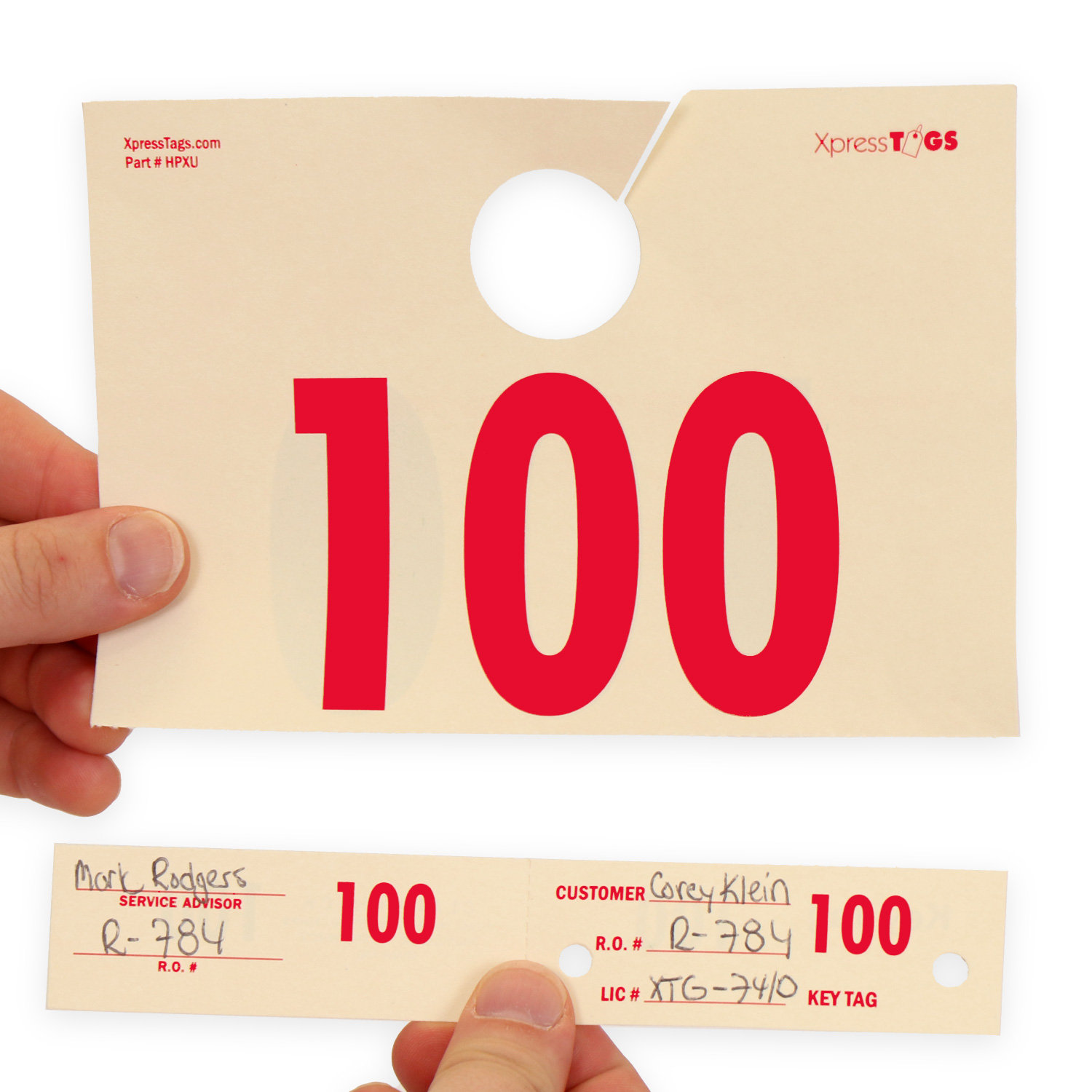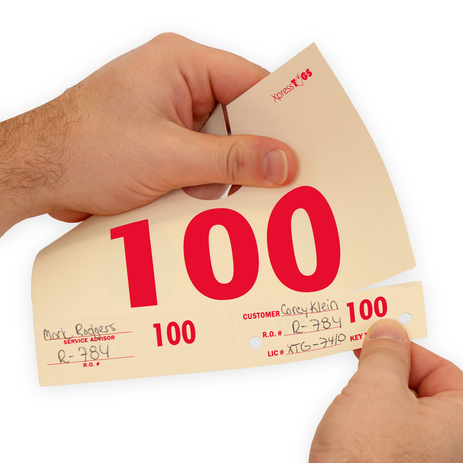 Perforated Dispatch Service Hang Tag includes key tag and claim check tag.