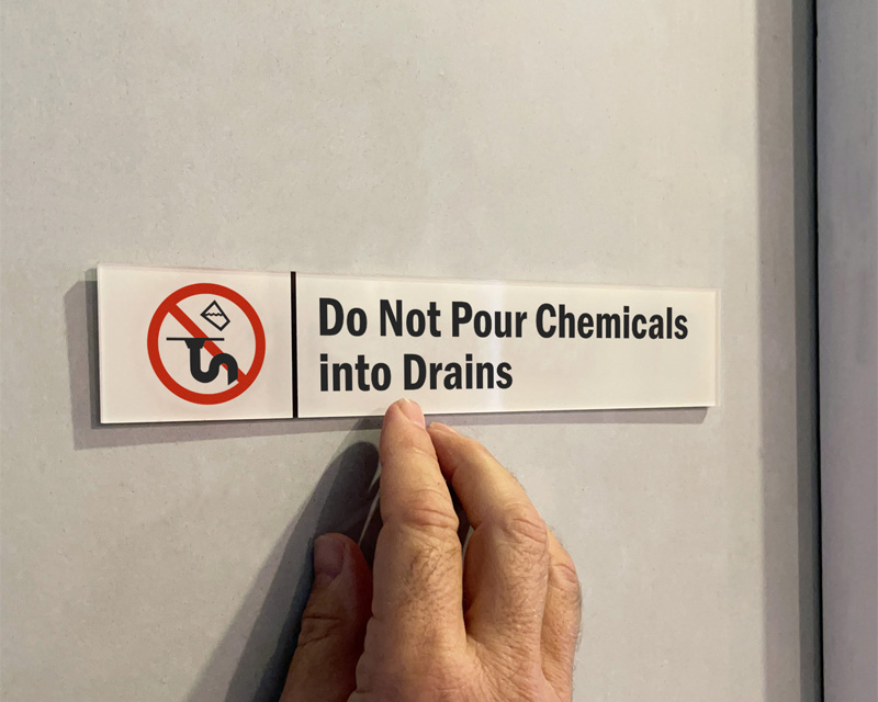 You can't dump everything down the drain. Post a warning, caution or notice near your drains and sinks to protect the integrity of your water supply.