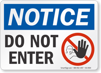 Do Not Enter Signs are not only for the roads. These signs also help you prohibit access to dangerous areas like confined spaces, chemical storage areas, electrical rooms, radiation areas, construction zones, and more. Do Not Enter Safety Signs protect untrained personnel from entering hazardous locations in your facility and reduce your liability in case of an accident. Using strict language for Do Not Enter Signs helps reinforce compliance in unsafe areas.