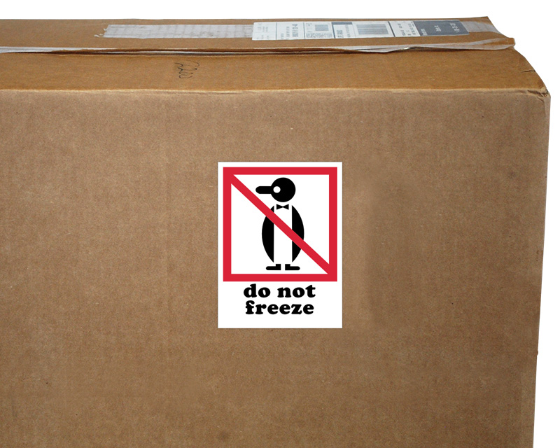 Frozen products may lose potency (vaccines), separate (emulsions), crack (latex), or become toxic (certain chemicals), with liability for damaged goods falling on carriers ignoring warnings. Combine with Fragile labels for comprehensive handling instructions.