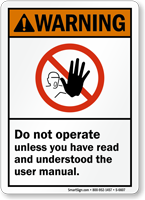 • • Do Not Operate Machinery Signs are made from durable plastic and heavy-duty aluminum. Signs are resistant to high temperatures, chemical spills, fading, abrasion, and enjoy a long outdoor life.