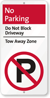 The most effective do not block driveway signs use direct language like "Do Not Block Driveway, Violators Will Be Towed," and our do not block driveway tow away sign is one of our most popular options because you can also customize it with your towing company's contact information for added authority.