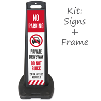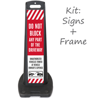 Posting a clearly visible "Do Not Block Driveway" sign is the most effective first step, and our do not block driveway LotBoss portable sign kit is a great option for properties that need a freestanding, highly visible barrier sign that can be repositioned as needed without any drilling or tools.