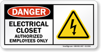 Electrical Closet are installed with transformers, pull boxes, connection boxes, and other high voltage supplies. It is important that electrical closets are accessible to qualified persons only. Electrical Closet Signs make sure untrained individuals do not enter the electrical rooms by accident.