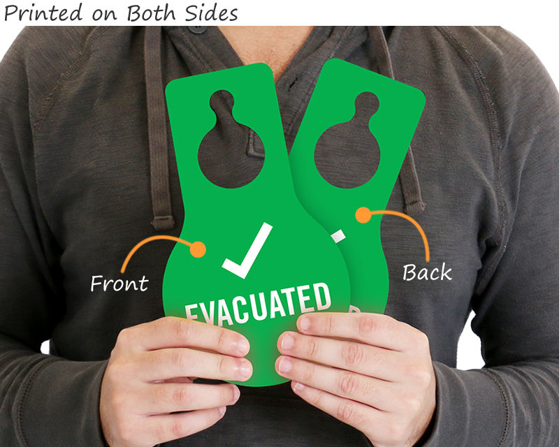 Don’t risk missing an important room check. Evacuated Door Hangers instantly identify rooms that have been checked. Tags are printed on both sides. Several materials are available.