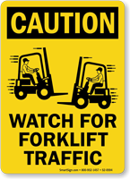 We use these signs, with arrows to indicate direction of forklift traffic, to alert team members that they are about to step into a traffic lane. The signs are high visibility and readily seen by those on foot. The only issue we have had with the signage is that the wording gets worn off with constantly being run over by forklifts. Foot traffic has little effect on the signage.