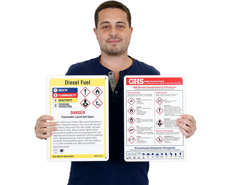 Place GHS signs to organize how you classify and label chemicals in your facility. A comprehensive system ensures that all companies follow the same specifications. Prominent, international symbols help everyone follow important procedures and precautions.