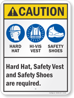• • We also offer a variety of ANSI-designed messages for hard hats, safety glasses, and other required PPE. Laminated for durability, and great for outdoor use.