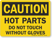 Hot Warning Labels indicate the present surface temperature and caution workers against equipment with hot surfaces (dryers, motors, engines, water heaters, boilers, valves, etc) to prevent contact with them leading to thermal burns. Labels can also be used to study the heat sustaining and resisting capacity of equipment or material in use.