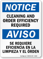 Yes. We offer bilingual English/Spanish housekeeping signs to ensure all workers receive the same cleanliness and organization reminders regardless of their primary language. Bilingual housekeeping signs are particularly valuable in manufacturing, food processing, and hospitality environments with diverse multilingual workforces where consistent housekeeping communication is essential for both safety and hygiene compliance.