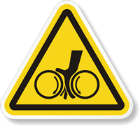 • • ISO 3864 defines that warnings should be in a triangular shape, have a black border and a black symbol. These are used to warn of hazards that could result in personal injury or a threat to health.