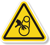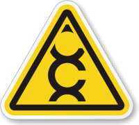 • • ISO 3864 defines that warnings should be in a triangular shape, have a black border and a black symbol. These are used to warn of hazards that could result in personal injury or a threat to health.