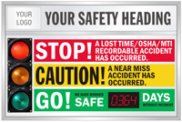 Looking for safety scoreboards online? You’ve come to the right place. Now easily track your employees’ days without a lost time accident and motivate them to get better of their own record. Visual display of your employee’s accident-free work days foster a safe working atmosphere at your workplace.