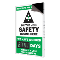 • • Digital Safety Scoreboards are an inexpensive way to remind about safety. Try our digital electronic display, magnetic numbers, or zip track numbers.