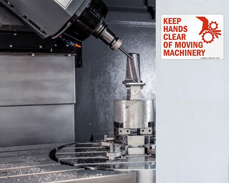 Yes, our keep hands clear sign and adhesive options from our keep hands clear signs collection in polyester and vinyl formats apply directly to machine housings, guard covers, and equipment panels, positioning the warning exactly where it is most needed at the point where an operator would reach toward the hazardous moving part.