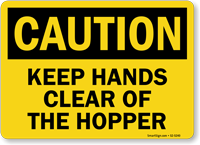 Yes, our customizable templates from our keep hands clear signs collection allow you to add a specific machine name, hazard location description, or operational instructions, and our keep hands clear of hopper and auger assembly sign is one example of our equipment-specific stock options for facilities adding point-of-use safety reminders to existing production line equipment.