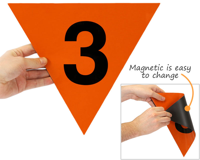 • • Choose between two different sizes and five different materials to best fit your location's needs. Materials are available in reflective plastic or reflective sheeting. Reflective is ideal for EMS workers that must quickly determine the nature of the hazard – even in the dark or in blackout conditions.