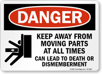 • • We have signs for rotating blades, pinch points, and other moving parts of machinery.