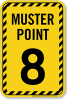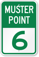 Muster point signs direct all guests and employees during an emergency. Post signs for your thoughtful and prepared evacuation plan.