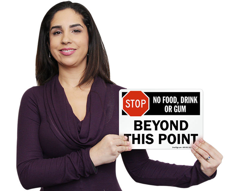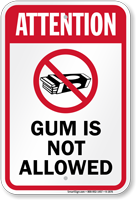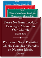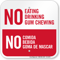 We carry no chewing gum signs for food processing plants, pharmaceutical cleanrooms, medical device manufacturing areas, and commercial food service operations where chewing gum poses a contamination risk. Signs are available in aluminum, plastic, and adhesive vinyl - with bilingual English/Spanish options and pictogram designs for facilities with diverse multilingual workforces.