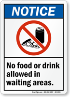 Maintain hygiene and prevent contamination by posting No Food Or Drink Signs around sensitive areas. These no eating signs, no drink signs, and breakroom restriction signs work well in both indoor and outdoor environments.