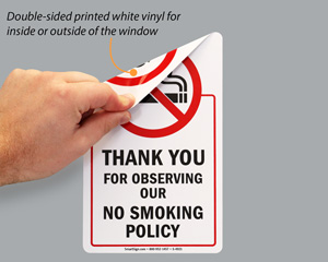 Our No Smoking ShowCase signs feature subsurface graphics and an elegant border on thick, durable acrylic. While these are designed primarily for indoor use, you may use them outdoors as well. For better durability, please mount the sign on a smooth, adhesive-compatible surface in an area that isn't constantly exposed to sunlight.