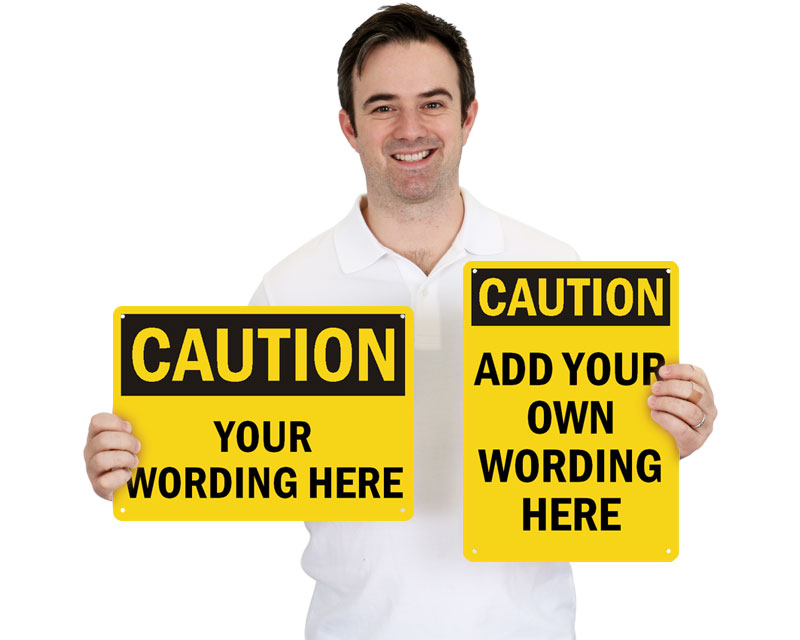 • • But, it is also easy - and suprisingly affordable - to design and order a Custom Caution Sign. Our direct-to-the-factory custom sign wizard cuts out costs and custom signs are almost the same price as a stock sign.
