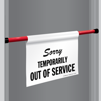For doors and restrooms our 7x10 or 10x14 inch signs are most popular, and for elevator doors our elevator out of order sign is available in larger formats for better visibility, with our full out of order signs collection offering a range of sizes to fit any application.