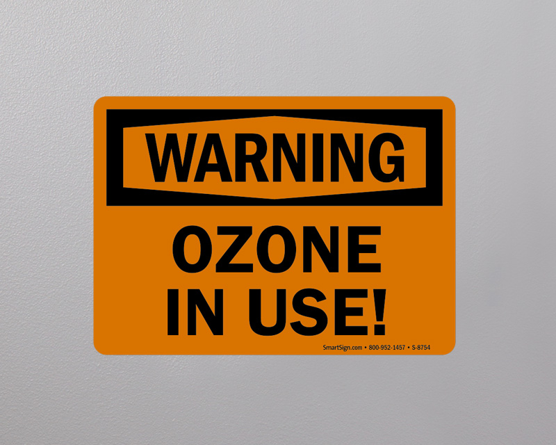 Ozone is a reactive gas toxic at concentrations above OSHA's permissible exposure limit of 0.1 ppm, causing respiratory irritation, coughing, shortness of breath, and at high concentrations serious lung damage, and our warning ozone in use sign is important in any facility where UV lamps, arc welding, plasma cutters, photocopiers, or high-voltage electrical discharges generate ozone in regular use.