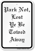 Funny parking signs can be surprisingly effective because they attract attention and get read more often than plain warning signs, and our parking here fuggedaboutit humorous sign is a great example of a sign that gets noticed, gets laughs, and still gets the message across to unauthorized parkers.