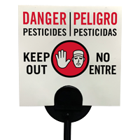 • • Signs are mandated by the EPA. Display messages to inform workers and passerby about the presence of pesticides.
