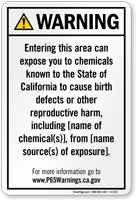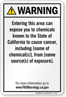Yes, our consumer product exposure Prop 65 sign is one of our customizable templates where you can specify the chemical name and source of exposure, formatted at the minimum 72-point font size required by law with sign size adjusted as needed to accommodate additional chemical information.