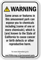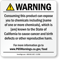 Yes, our consumer product exposure Prop 65 sign is one of our customizable templates where you can specify the chemical name and source of exposure, formatted at the minimum 72-point font size required by law with sign size adjusted as needed to accommodate additional chemical information.